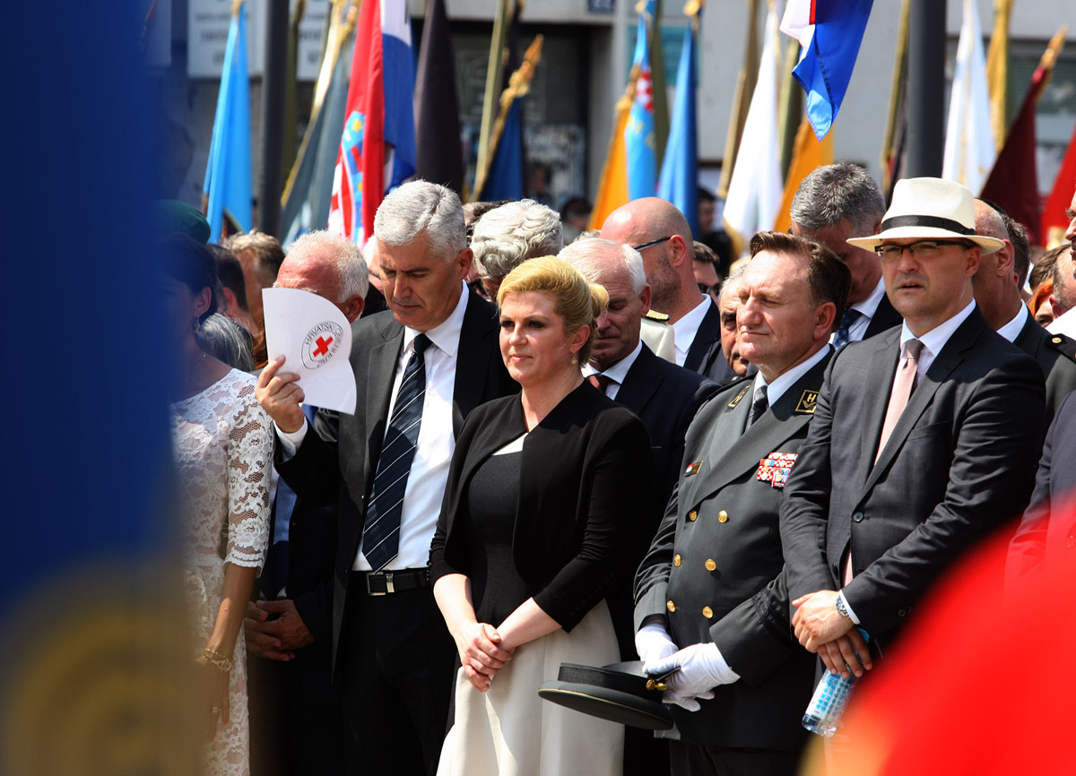 Nakon mise u prigodnom obraćanju na Trgu Ante Starčevića predsjednica Grabar Kitarović je uputila posebnu zahvalu svim sudionicima Oluje a poglavito onima koji su poginuli za domovinu. Istaknula je kako ovo nije samo proslava Oluje već skup zajedništva i ponosa. Kazala je kako nikada ne smijemo zaboraviti da je Hrvatska napadnuta kao ni dopustiti da se agresor i žrtva izjednačavaju. Istaknula je kako je Oluja bila čista kao suza i jedan je od zaglavnih kamena moderne hrvatske države.