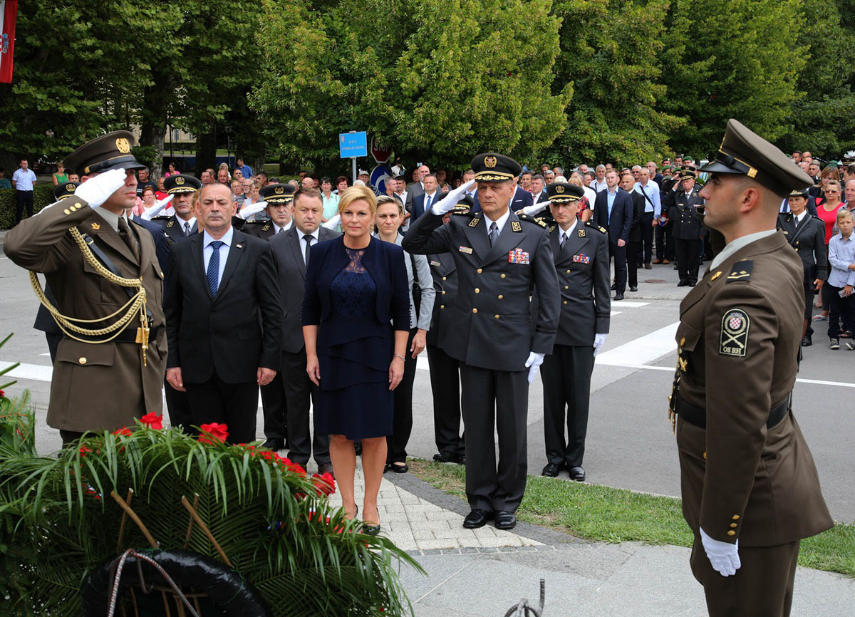 Svečanosti su, uz predsjednicu RH, nazočili izaslanik predsjednika Vlade RH ministar hrvatskih branitelja Tomo Medved, izaslanik potpredsjednika Vlade RH i ministra obrane zamjenik načelnika Glavnog stožera Oružanih snaga RH general-pukovnik Drago Matanović, župan Sisačko-moslavačke županije Ivo Žinić, gradonačelnik Grada Gline Stjepan Kostanjević, članovi obitelji poginulih, umrlih i nestalih hrvatskih branitelja, invalidi i stradalnici Domovinskog rata, sudionici vojno-redarstvene operacije Oluja s područja Banovine, predstavnici državne i lokalne vlasti, crkveni velikodostojnici te stanovnici Gline i Sisačko-moslavačke županije.