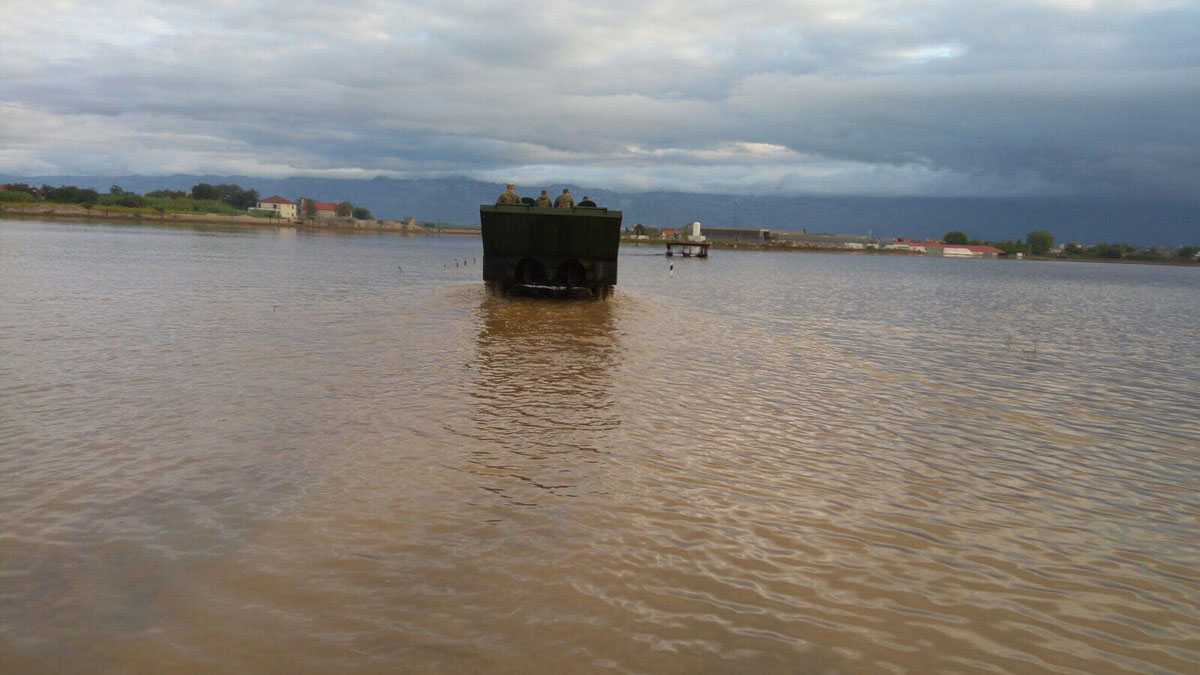 Na poplavljeno područje Nina u Zadarskoj županiji u ranim jutarnjim satima danas, u utorak, 12. rujna 2017., upućen je jedan amfibijski transporter PTS-2 i 12 pripadnika Zapovjedništva za potporu OS RH, kao pomoć u obrani od poplava.
