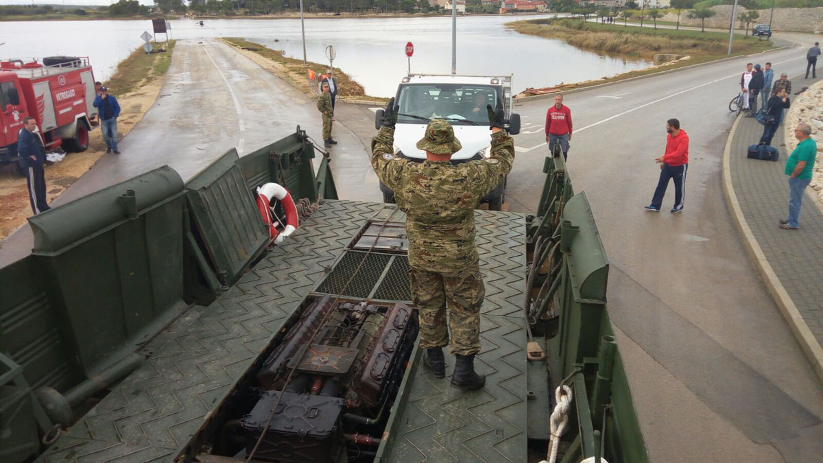 Zbog obilne kiše koja je izazvala poplave na području Zadra i Zadarske županije na terenu je angažirano ukupno 108 pripadnika HKoV-a OS RH s motornim vozilima i inženjerijskim strojevima sa 14 pokretnih motornih pumpi za ispumpavanje vode kapaciteta 700 litara u minuti, temeljem usmenog naloga potpredsjednika Vlade RH i ministra obrane Damira Krstičevića.