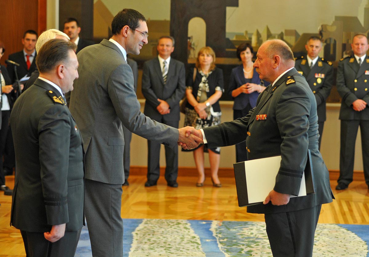 "Nova vremena traže i novi postav obrambenog sustava", rekao je predsjednik Josipović i dodao kako je siguran da će oni prije odlaska u mirovinu svojim korisnim savjetima sudjelovati u daljnjoj izgradnji naših Oružanih snaga, koje moraju biti male, efikasne i visoko stručne.