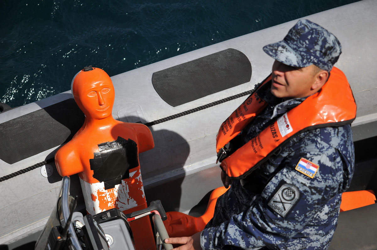 Osim gađanja provedena je i obuka traganja i spašavanja na moru u kojoj su bile angažirane i zračne snage, prije svega zrakoplovi Pilatus koji su u operativnoj uporabi u Obalnoj straži. Obuku je koordinirala pukovnica Antonela Marinov, pilotkinja helikoptera MI 8 i časnica za uporabu zrakoplovnih snaga u zapovjedništvu Obalne straže. Iako ne treba posebno naglašavati ulogu zračne komponente Obalne straže ipak treba podsjetiti kako su upravo oni prvi izviđači koji odlaze do najudaljenijih dijelova područja odgovornosti Obalne straže.