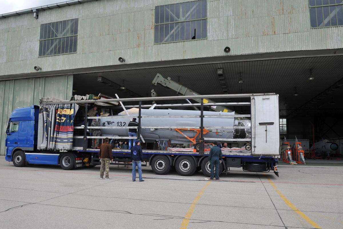 U 91. zrakoplovnoj bazi HRZ i PZO-a na Plesu danas, 16. travnja 2014., završen je istovar iz kamiona prva dva MIG-a 21 BIS, koji su proteklih dana stigli iz Ukrajine u Hrvatsku (drugi zrakoplov stigao je jučer u popodnevnim satima).