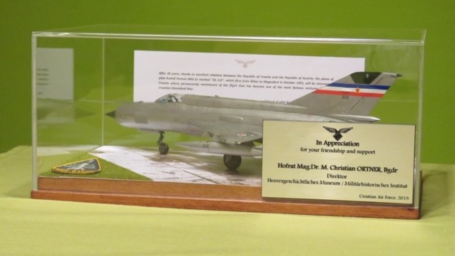 Također, tom prigodom upriličena je svečanost na kojoj je general Mikić izrazio zahvalnost ravnatelju Vojno-povijesnog muzeja (Heeresgeschichtliches Museum / Militärhistorisches Institut) umirovljenom generalu Christianu Ortneru za sve što je muzej i Austrijsko zrakoplovstvo poduzelo u pogledu čuvanja i vraćanja aviona MiG-21 hrvatskog pilota Rudolfa Perešina, darujući tim povodom Plaketu HRZ-a i maketu aviona MiG-21 ev. br. 26112 kojim je pilot Rudolf Perešin preletio u Klagenfurt. Maketu aviona izradio je nedavno umirovljeni pilot HRZ-a pukovnik Bili Levanić, a dar je u ime direktora preuzeo njegov zamjenik Olf Markus.