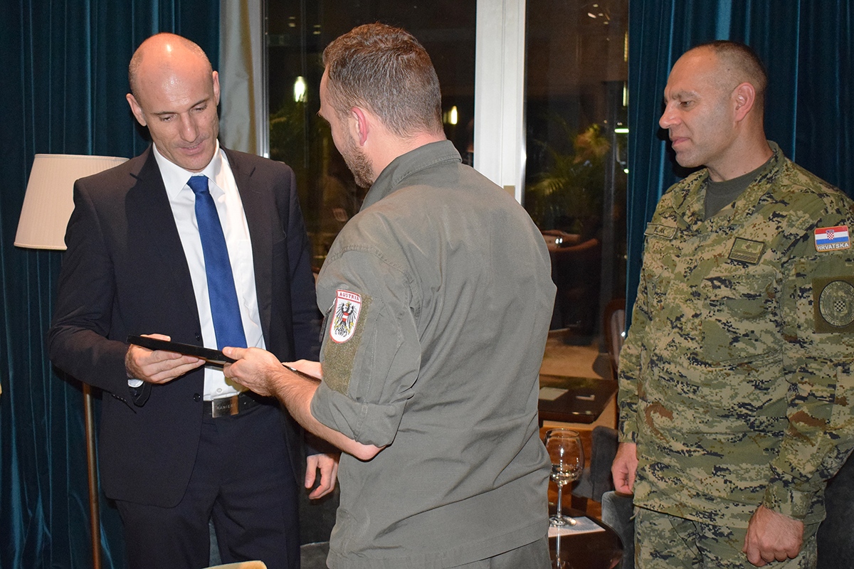 Svečanosti su nazočili zamjenik zapovjednika Hrvatske ratne mornarice komodor Damir Dojkić, načelnik Odjela za integraciju pri Upravi za logistiku brigadir Jozo Matković te uvaženi gosti Oružanih snaga Republike Austrije, zapovjednik Zapovjedništva za potporu general bojnik Alexander Platzer, načelnik stožera pri Zapovjedništvu za potporu brigadir Klaus Jäger i zapovjednik Logističke škole brigadir Stefan Lampl, kao i vojni izaslanik obrane Savezne Republike Njemačke u Republici Hrvatskoj pukovnik Dirk Bocklet.