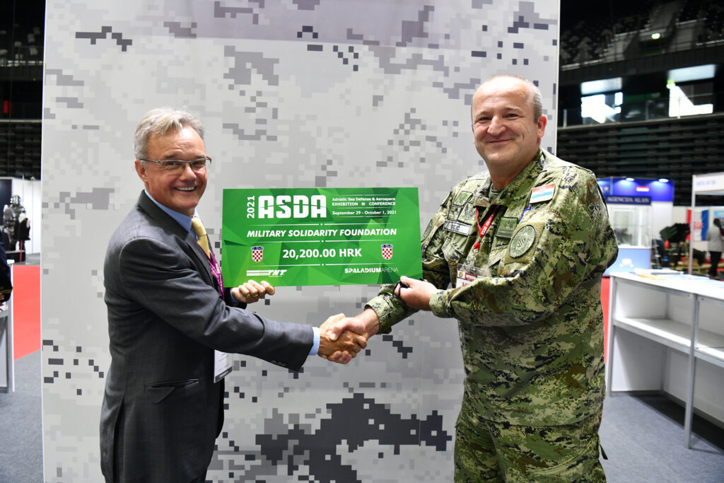 Na zatvaranju šestog izdanja Jadranske vojne i zrakoplovne izložbe i konferencije (Adriatic Sea Defense & Aerospace Exhibition and Conference – ASDA 2021), direktor TNT Productiona Justin Webb uručio je donaciju predstavnicima Zaklade vojne solidarnosti u petak, 1. listopada 2021. u Spaladium Areni u Splitu.