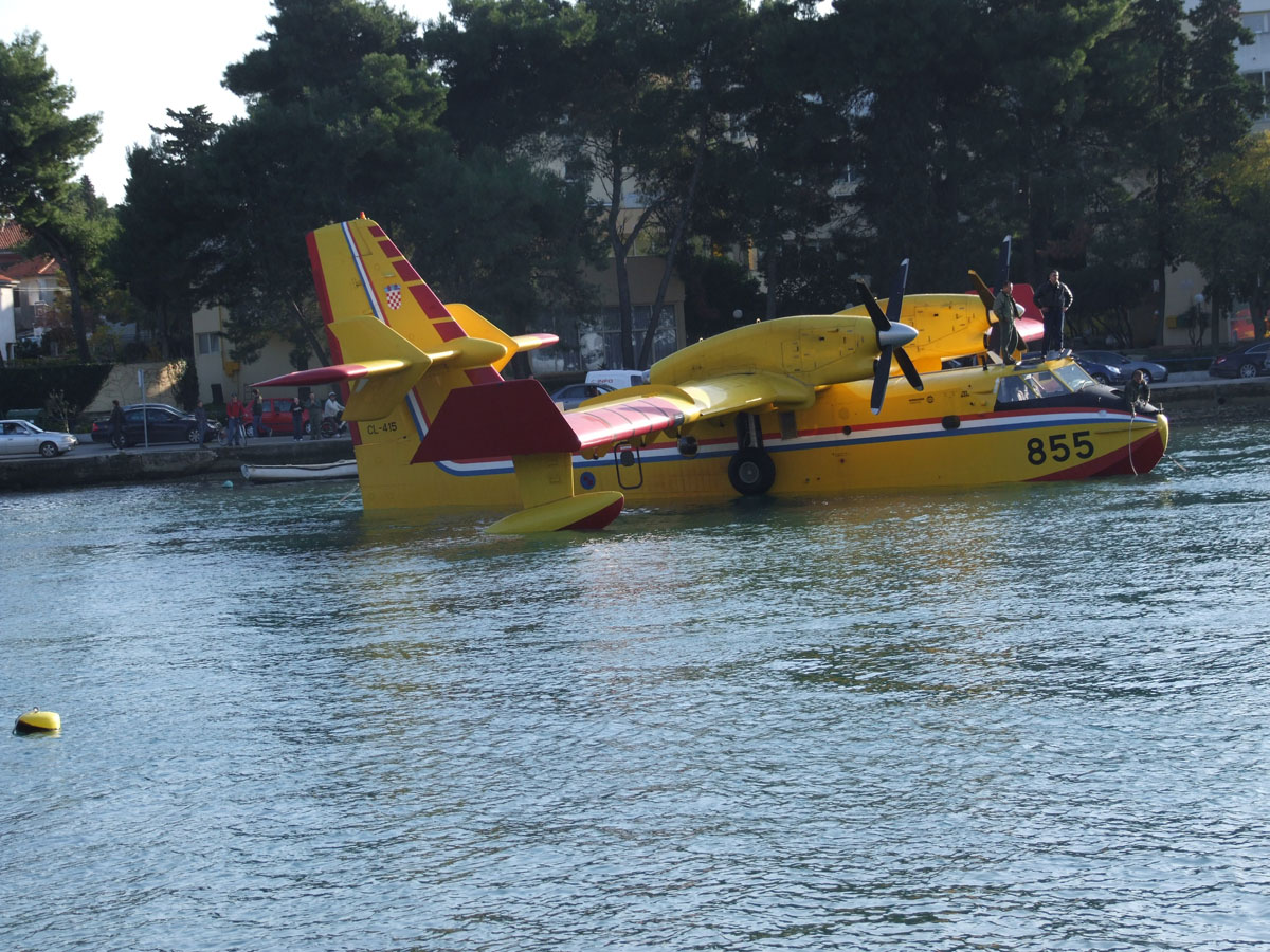 Tijekom redovite letačke obuke u četvrtak 19.studenoga 2009. oko 13 sati došlo je do tehničkog kvara na sustavu stajnog trapa na avionu Canadairu CL 415 registracijskih oznaka 855 iz sastava 93.zrakoplovne baze. Postupak u takvim situacijama nalaže slijetanje na vodu te je posada sletjela u Zadarski kanal. Uz pomoć brodica Lučke kapetanije i policije avion je dotegljen do uvale Draženica, gdje je u tijeku akcija privezivanja i osiguranja zrakoplova. Nakon osiguranja pristupit će se otklanjanju kvara na avionu Canadair CL 415.