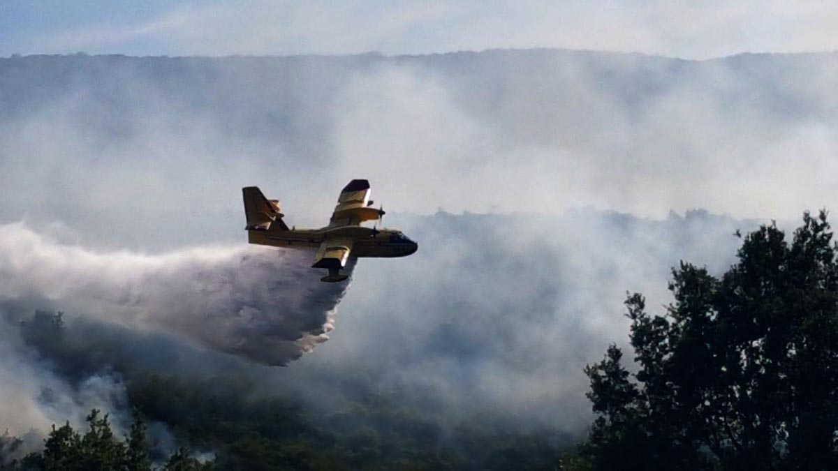 Tako su dva Candaira CL-415 najprije sudjelovala u gašenju požara kod Raslina pored Šibenika a potom na lokaciji Kozjak-Turići kod Knina.